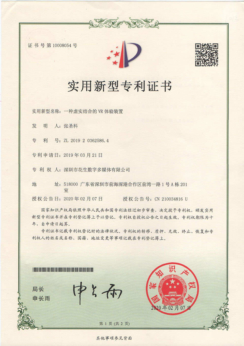 此次,花生数字取得中国多媒体工程系统集成资质证书及虚实结合的VR体验装置实用新型专利证书,是花生数字多年来在多媒体技术及VR技术领域资质的肯定,也充分显示出花生数字在业内的实力。